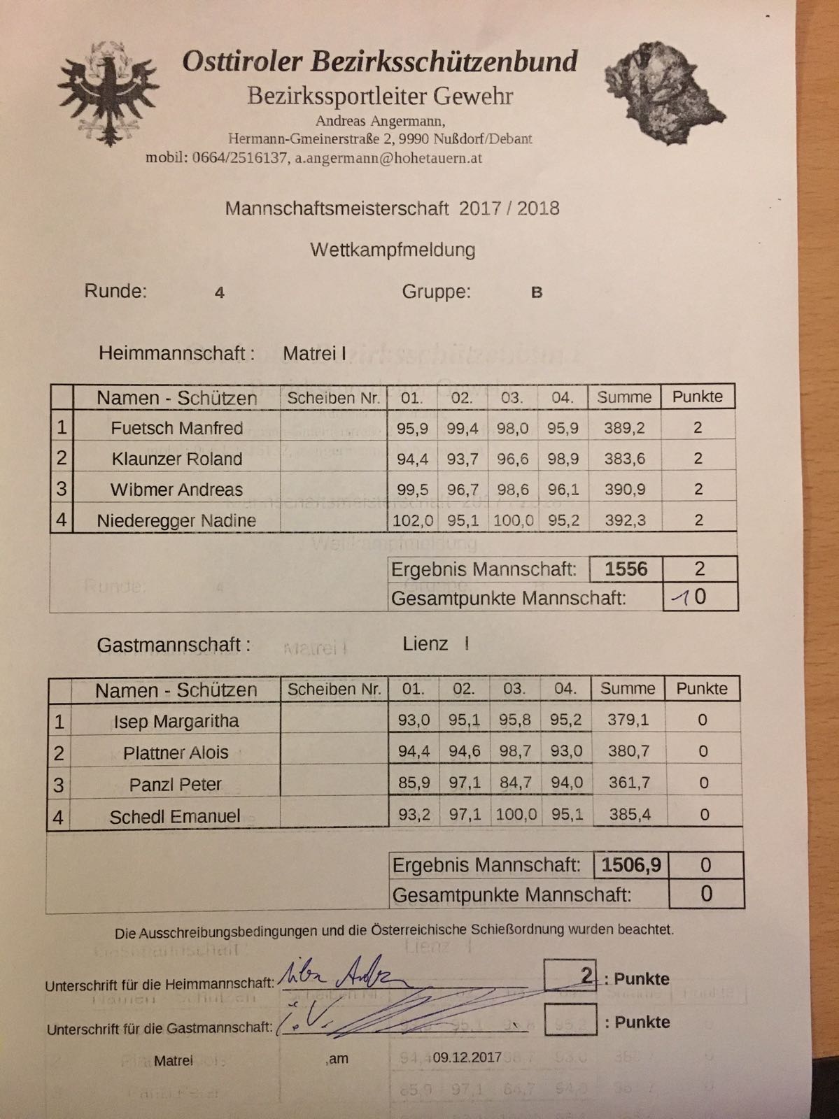 Ergebnisse Lienz 3. Runde korrigiertes Ergebnis